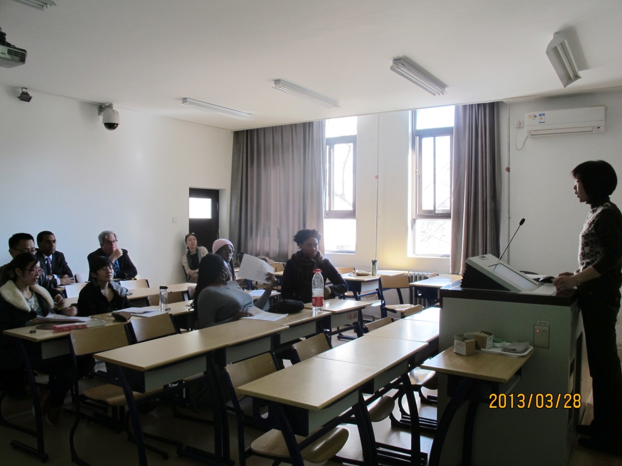 2013年3月28号,美国欧柏林学院文理学院院长Prof. Sean Decatur带领欧柏林学院代表团观摩了我院的英文国际课“产业生态学”的现场教学。该课由我院毛建素老师主讲,来自美国Virginia State University的留学生与我院环境科学研究生共同修读了该课程。