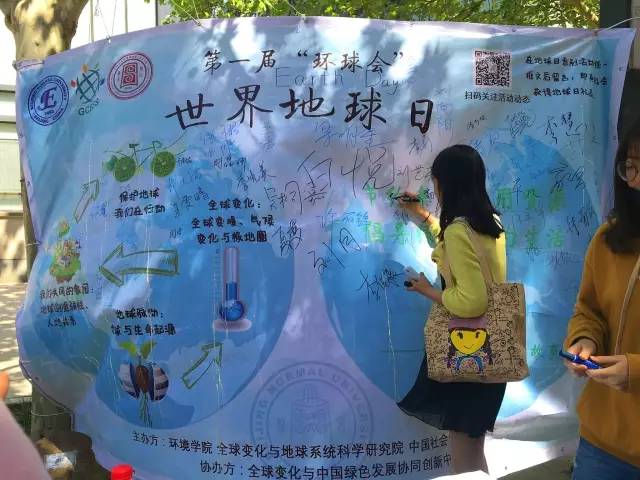 最后,每一位参加活动的同学都在我们的海报上签上了自己的名字,代表自己保护地球,爱护环境的信念。通过这次活动,希望大家不仅在地球日期间,同时在日常的生活中也多多关注环境,从身边的小事做起,爱护我们共同的家园。