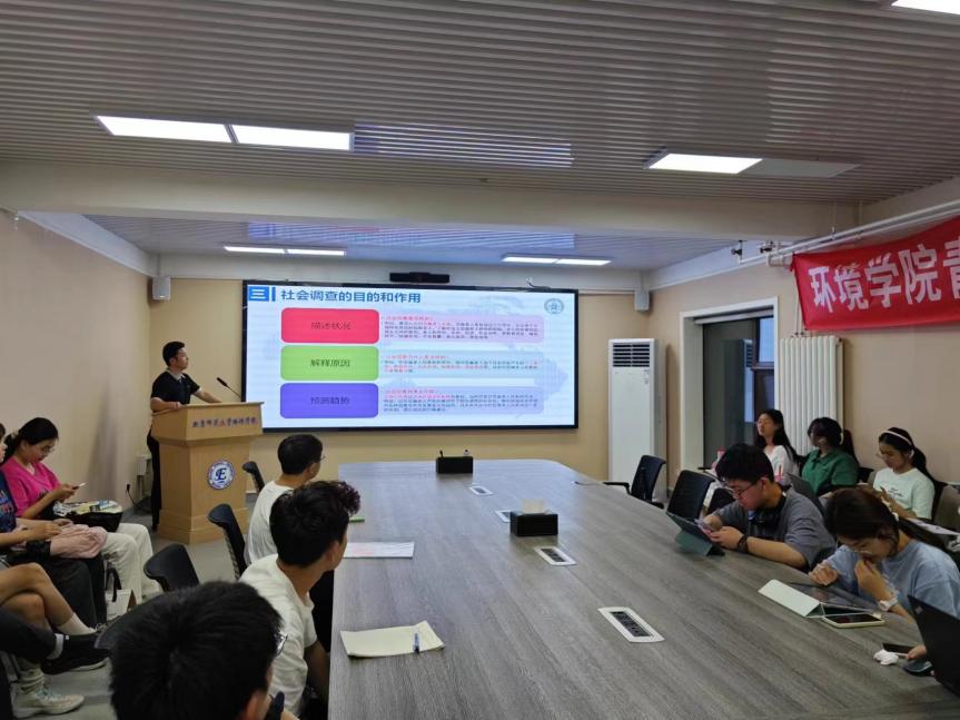 为响应学校和学院开展暑期实践的号召,向同学们普及社会调查研究相关知识,2024年6月12日晚,必赢线路检测3003no12023级本科生班在学院后院106会议室举行社会调查专题培训班会。2023级本科生参与此次培训会学习。培训会由班主任皮兴灿老师主讲。