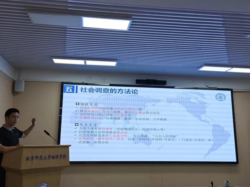 皮老师还介绍了实证主义和人文主义两大社会调查的方法论,同时强调了同学们在进行社会调查时容易进入的两大误区:一是容易将定量研究范式和定性研究范式混用,二是由于不了解扎根理论而容易造成误用。接着,皮老师还详细讲述了社会调查的开展步骤,介绍了从选题准备到调查分析,再到总结阶段的方法步骤和注意事项,同学们在其中受益良多。